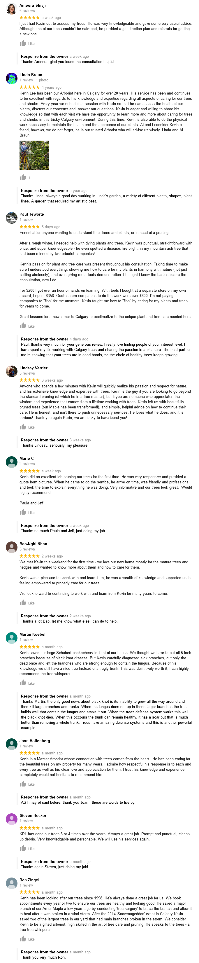 In summary, Kevin is very cost efficient, engaging and committed to tree and shrub health and to maintaining the esthetics of my landscape. He is indeed, a “tree whisperer.”